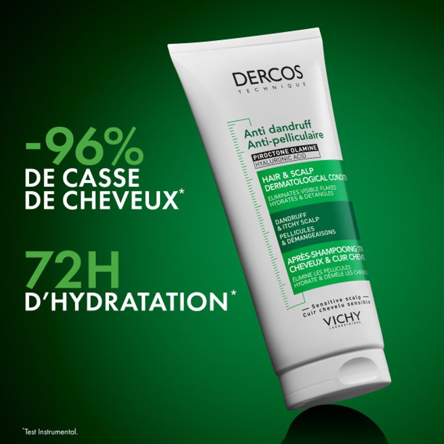 Après-shampooing anti-pelliculaire traitant qui aide à éliminer les pellicules visibles, apaiser les démangeaisons et restaurer le confort du cuir chevelu. Sa formule enrichie en piroctone olamine et en acide hyaluronique purifie le cuir chevelu tout en hydratant intensément les cheveux jusqu’à 72 heures. Il facilite le démêlage, réduit la casse et laisse les cheveux doux, brillants et légers, sans les alourdir. Adapté aux cuirs chevelus sensibles.