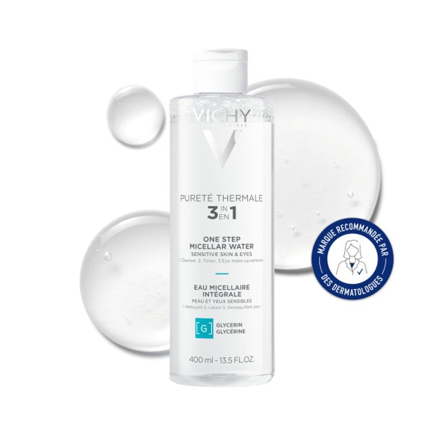 Eau micellaire minérale spécialement formulée pour les peaux sensibles. Elle nettoie, démaquille et élimine les impuretés en un seul geste, sans rinçage. Sa formule enrichie en eau volcanique de Vichy et en panthénol apaise la peau, renforce la barrière cutanée et procure une sensation de fraîcheur immédiate. La peau est propre, douce et confortable, sans tiraillements.