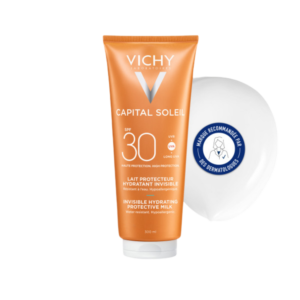 Lait solaire hydratant offrant une protection SPF 30 contre les rayons UVA et UVB. Sa formule fluide et légère hydrate la peau tout en assurant une protection efficace contre les dommages du soleil. Fini invisible, sans effet gras ni traces blanches, il convient au visage et au corps, même pour les peaux sensibles.
