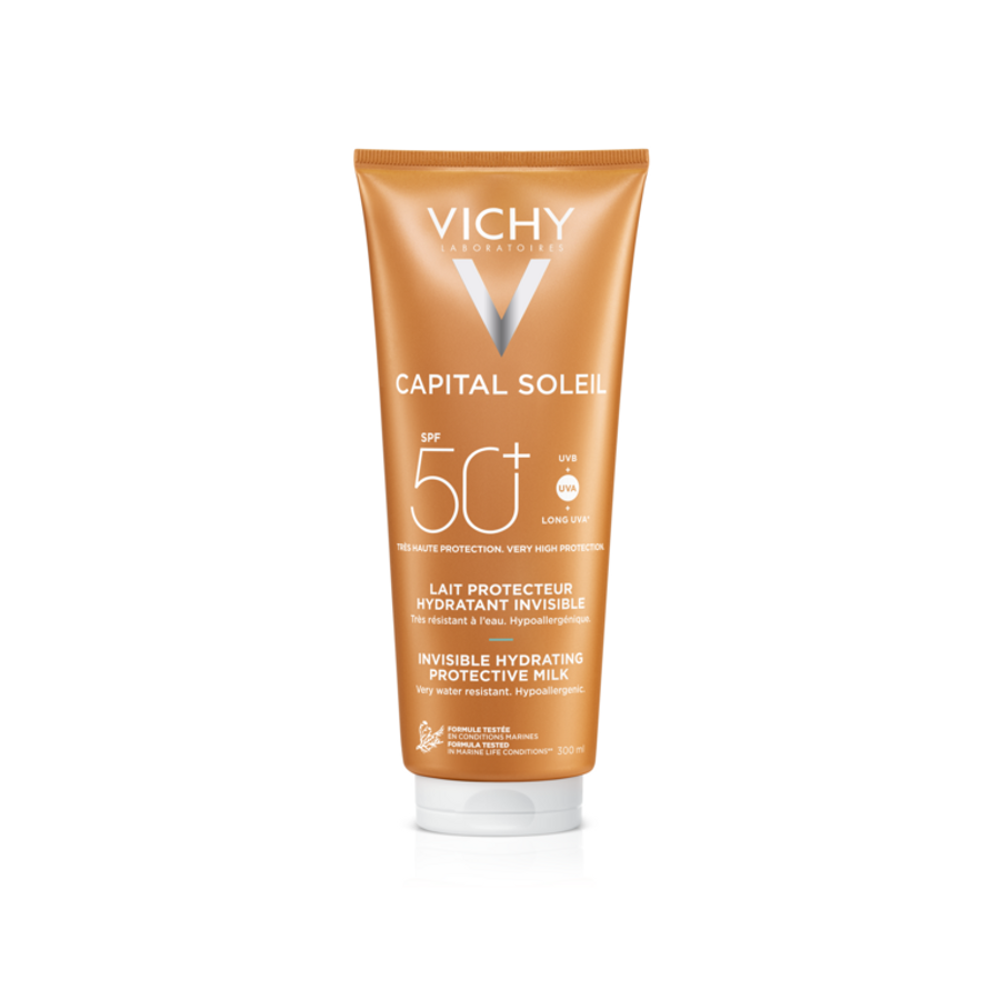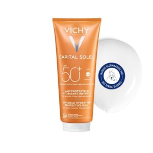 Lait solaire offrant une très haute protection SPF50+ contre les rayons UVA et UVB. Sa texture fluide et hydratante, enrichie en acide hyaluronique, protège la peau tout en maintenant son hydratation. Il s’applique facilement, ne laisse pas de traces blanches ni de fini gras et procure une sensation de fraîcheur, idéal pour le visage et le corps, même pour les peaux sensibles.